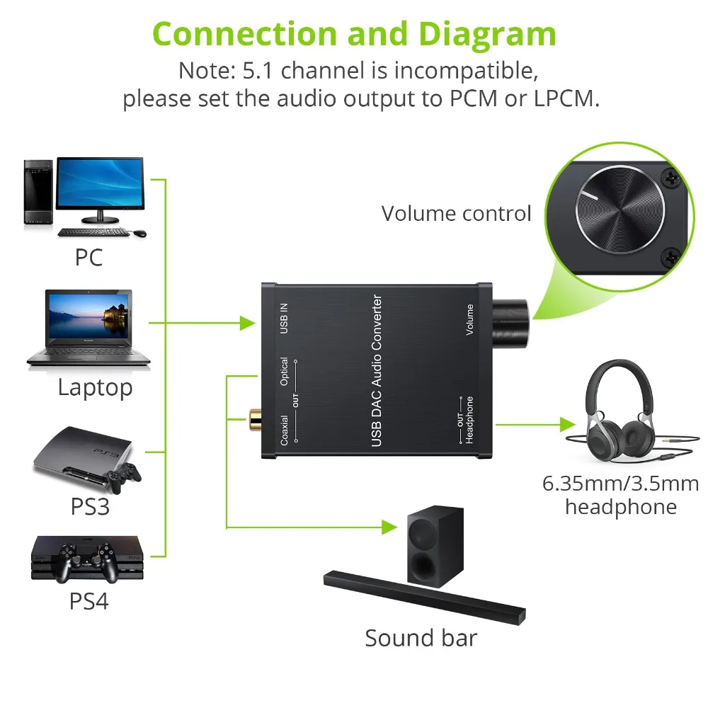 Compatible with PS4, PS3, Xbox 360, Xbox One S,which can be connected your headphones by USB DAC for playing games.