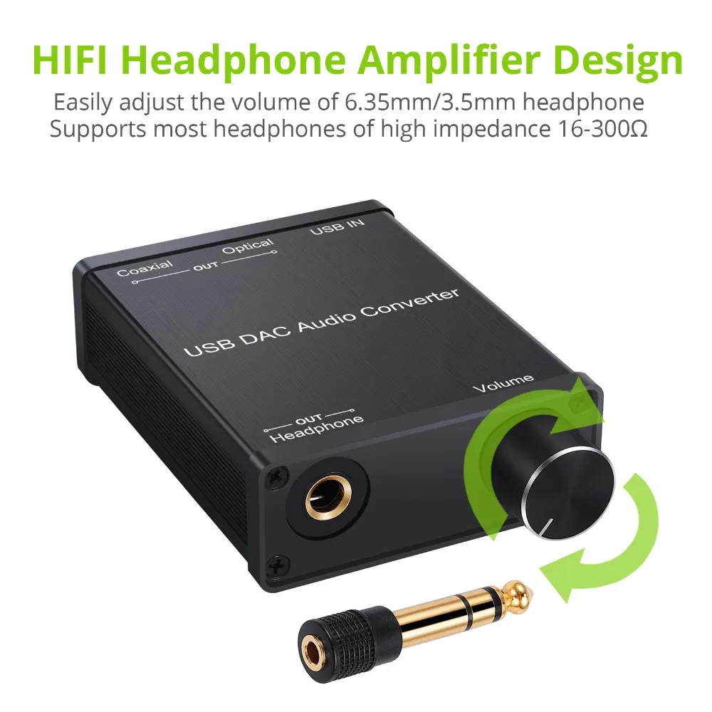 HiFi Headphone Amplifier, supports most headphones of high impedance 16-300Ω, signal-to-noise ratio> 100Db, THD + N = 0.0003%, fully filter noise, enjoy high-quality audio.